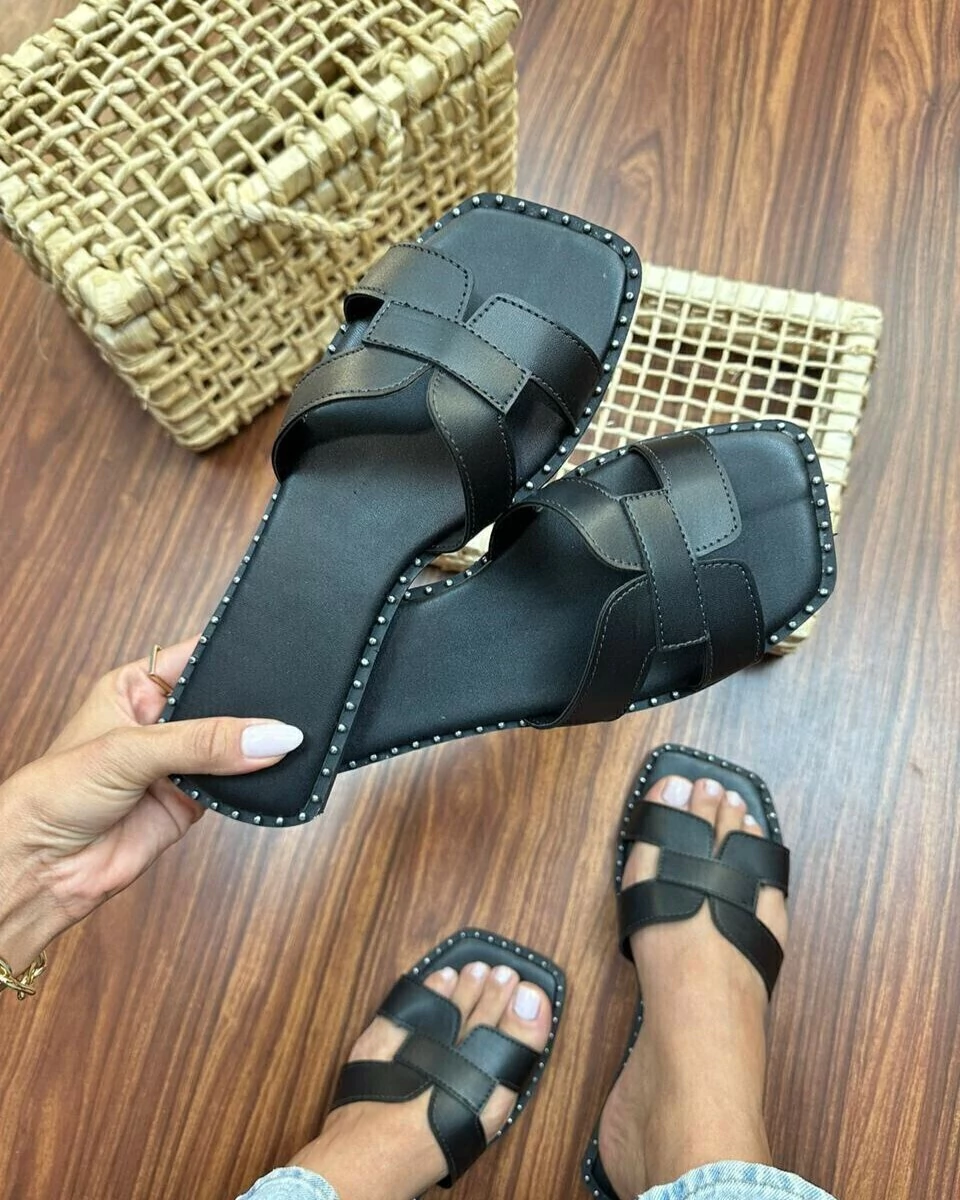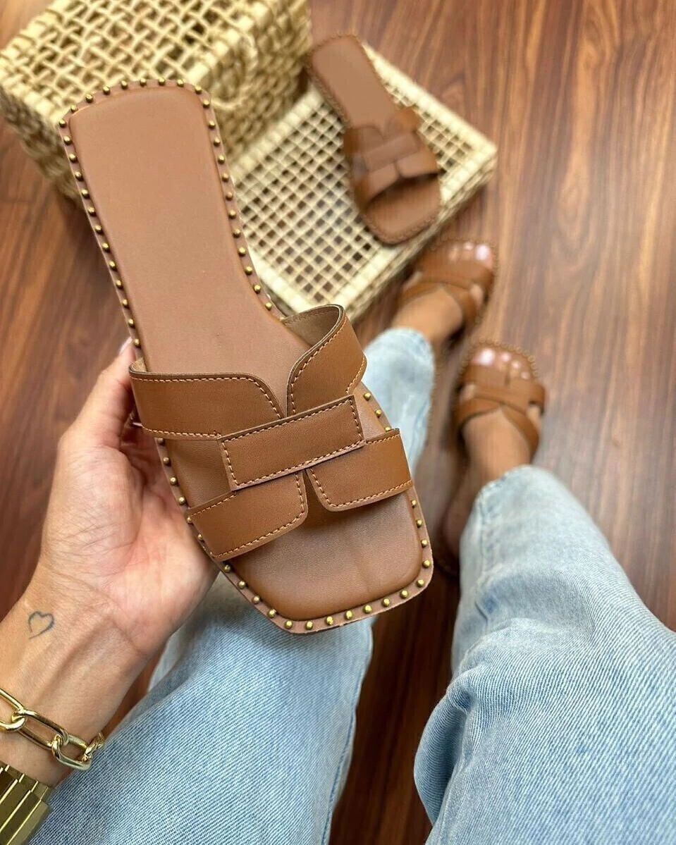 Adicione um toque de sofisticação ao seu guarda-roupa com a Rasteira Slide SCHT!