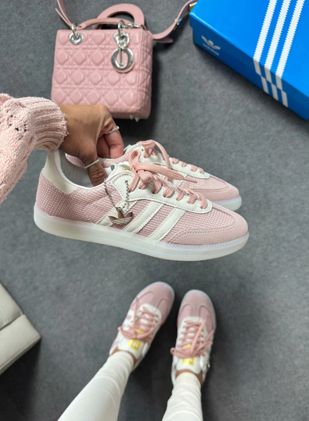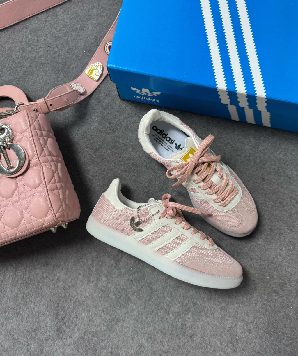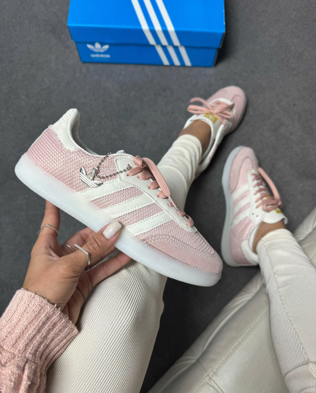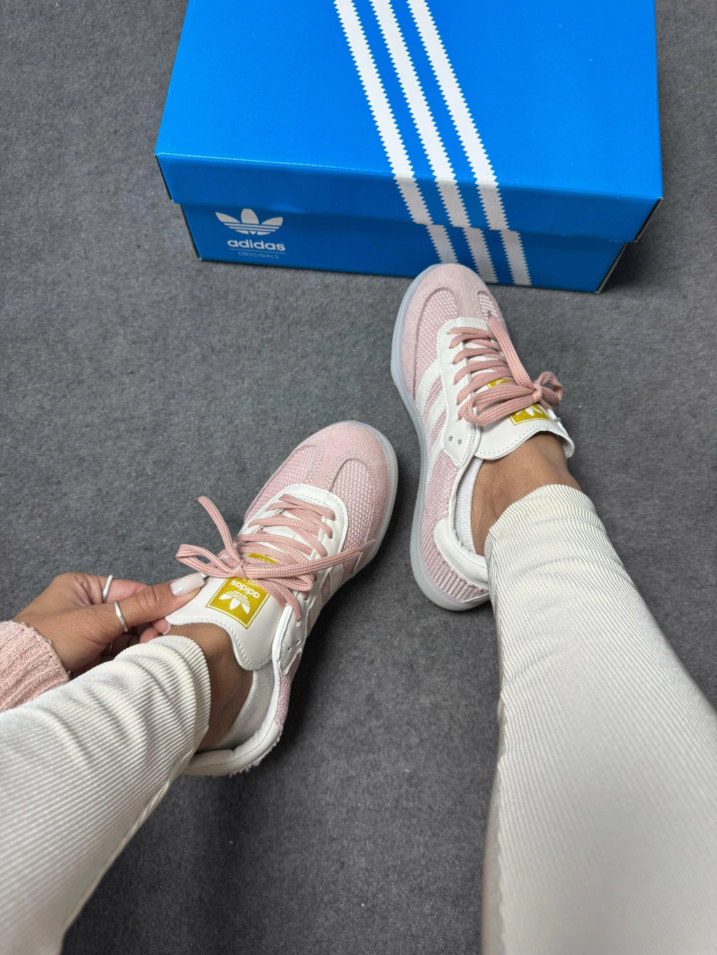 Tênis Adds Samba OG Tricô com frente em couro Rosê, um clássico reinventado para quem valoriza sofisticação e conforto. Seu design autêntico, combinado com a famosa sola de borracha, garante durabilidade e estilo em qualquer ocasião. Ideal para uso urbano e esportivo, oferece versatilidade e elegância em cada passo.