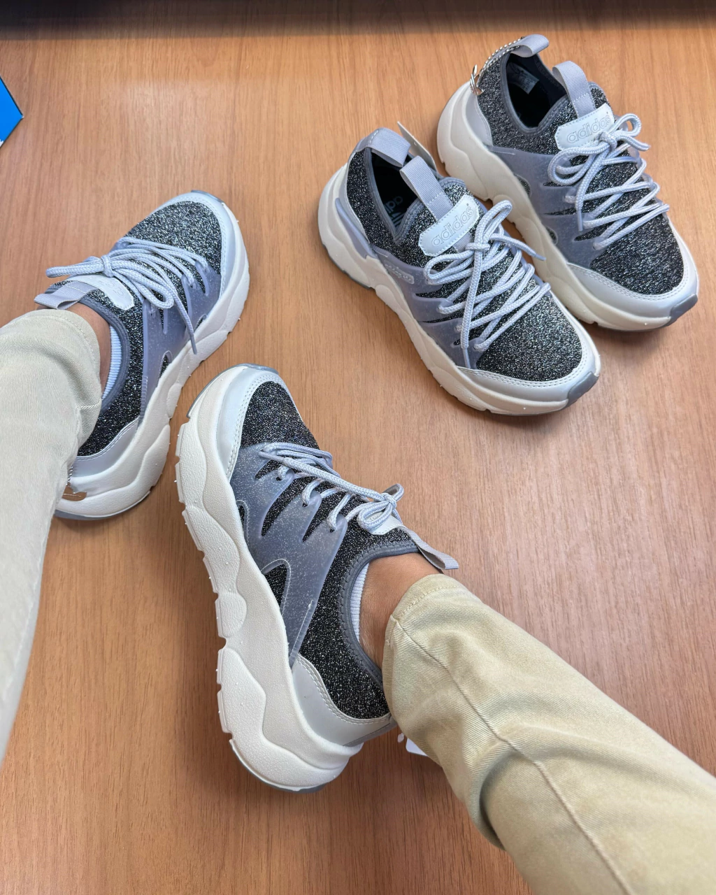 Brilhe com estilo e conforto! O ADS Knit Mesh combina modernidade e sofisticação com seu cabedal em tecido respirável com brilho em glitter, proporcionando personalidade e autenticidade. Seus detalhes suaves garantem um toque refinado, enquanto o solado alto de 4 cm, inspirado no icônico modelo AD Femmy, oferece um design imponente sem abrir mão do conforto. Ideal para quem busca um tênis versátil, estiloso e perfeito para qualquer ocasião.