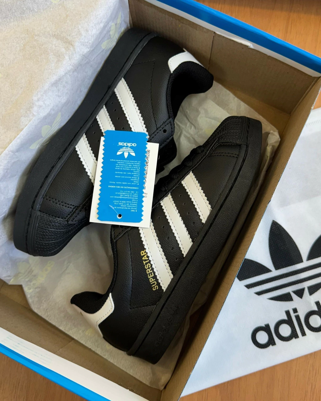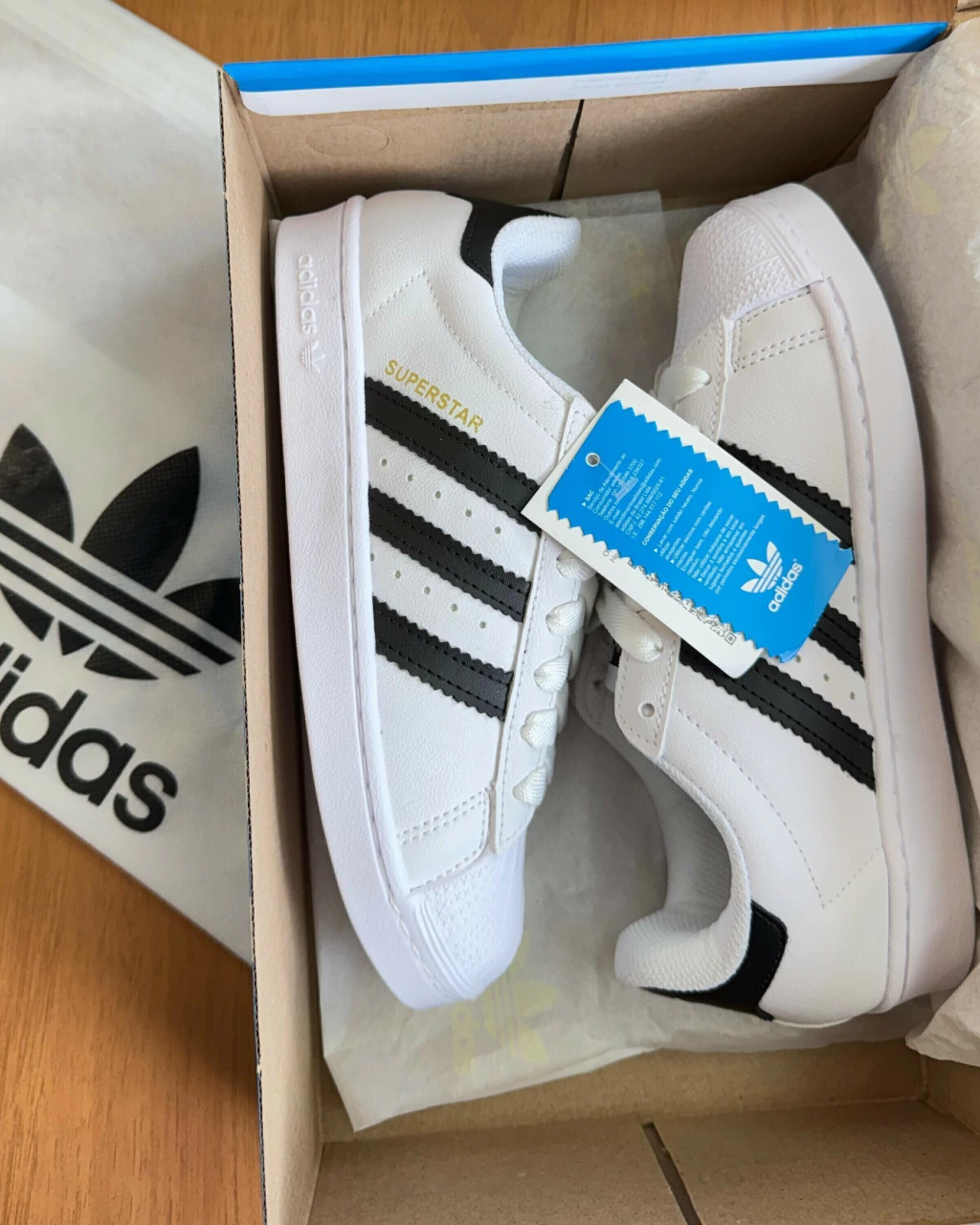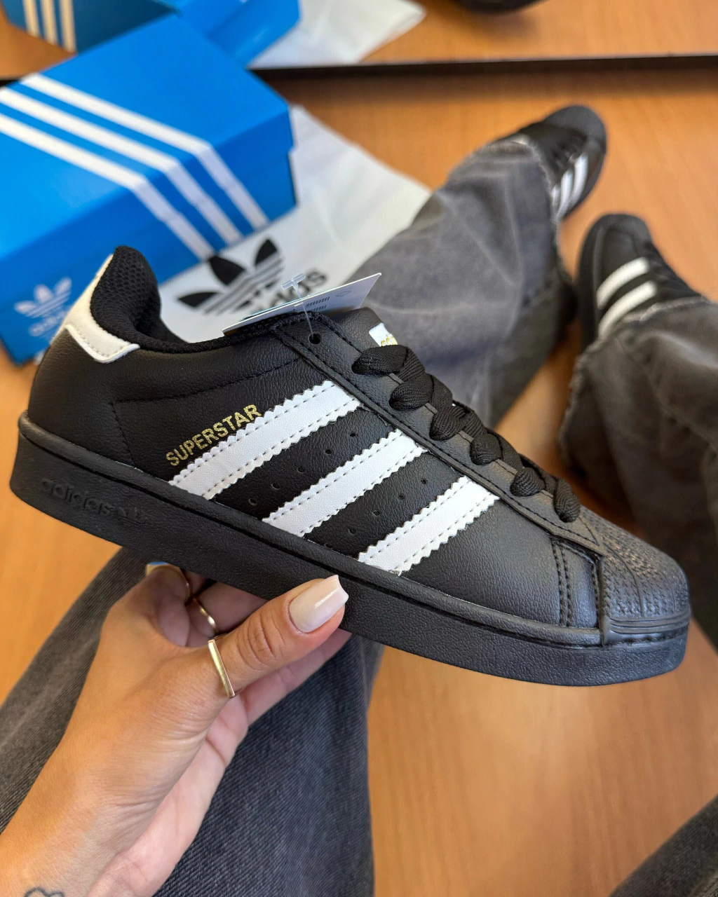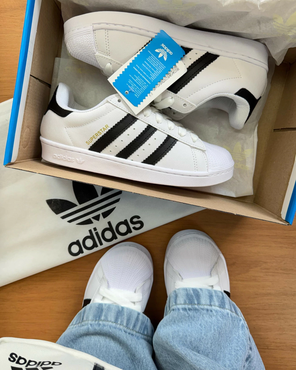 Confeccionado com materiais premium, o Superstar oferece uma estrutura resistente e durável, proporcionando um ajuste perfeito para os seus pés. Sua sola de borracha antiderrapante garante tração superior, oferecendo segurança e conforto a cada passo.