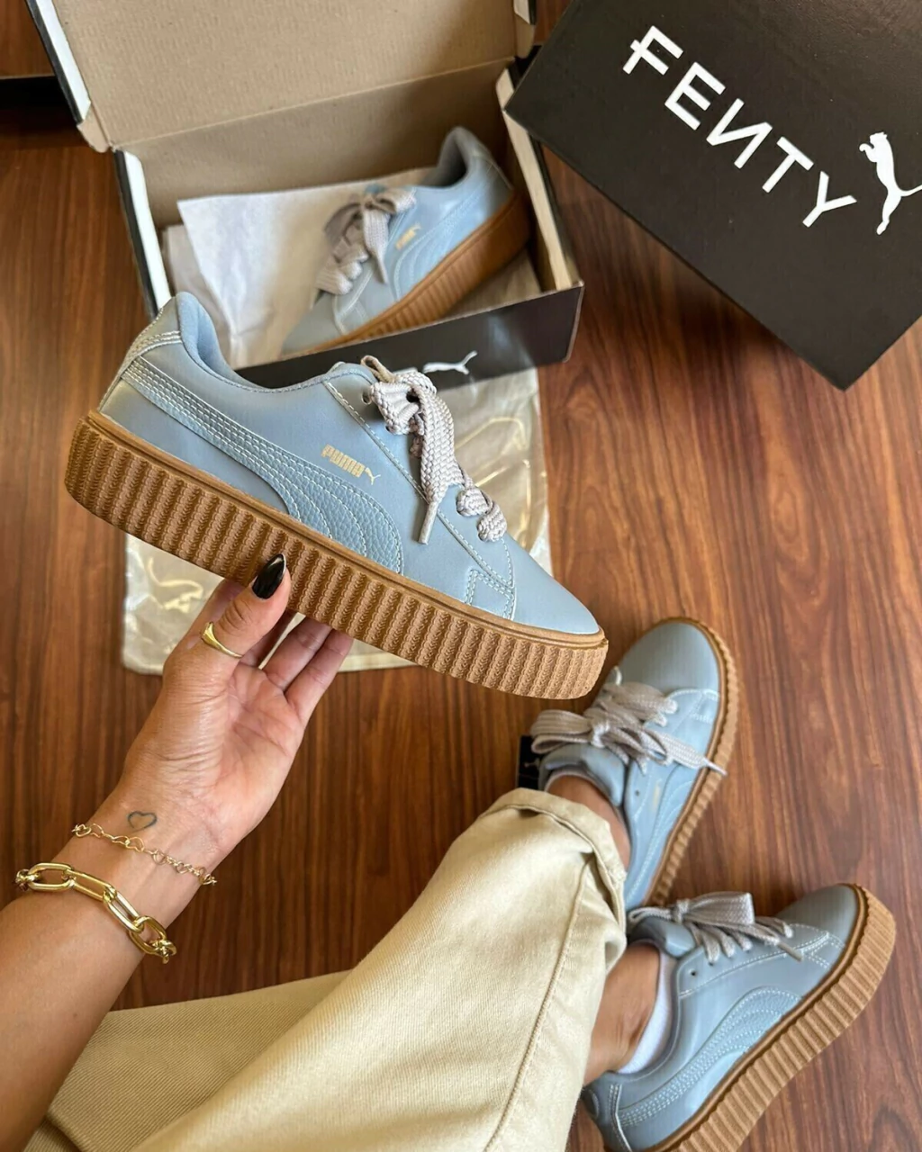 Este slide destaca a chegada do mais recente modelo de tênis da Puma, o Sued Soft Foam+, trazido diretamente do cenário internacional para a sua experiência de moda. Com um design inovador e tecnologia de ponta, este tênis promete elevar o conforto e o estilo a um patamar totalmente novo.