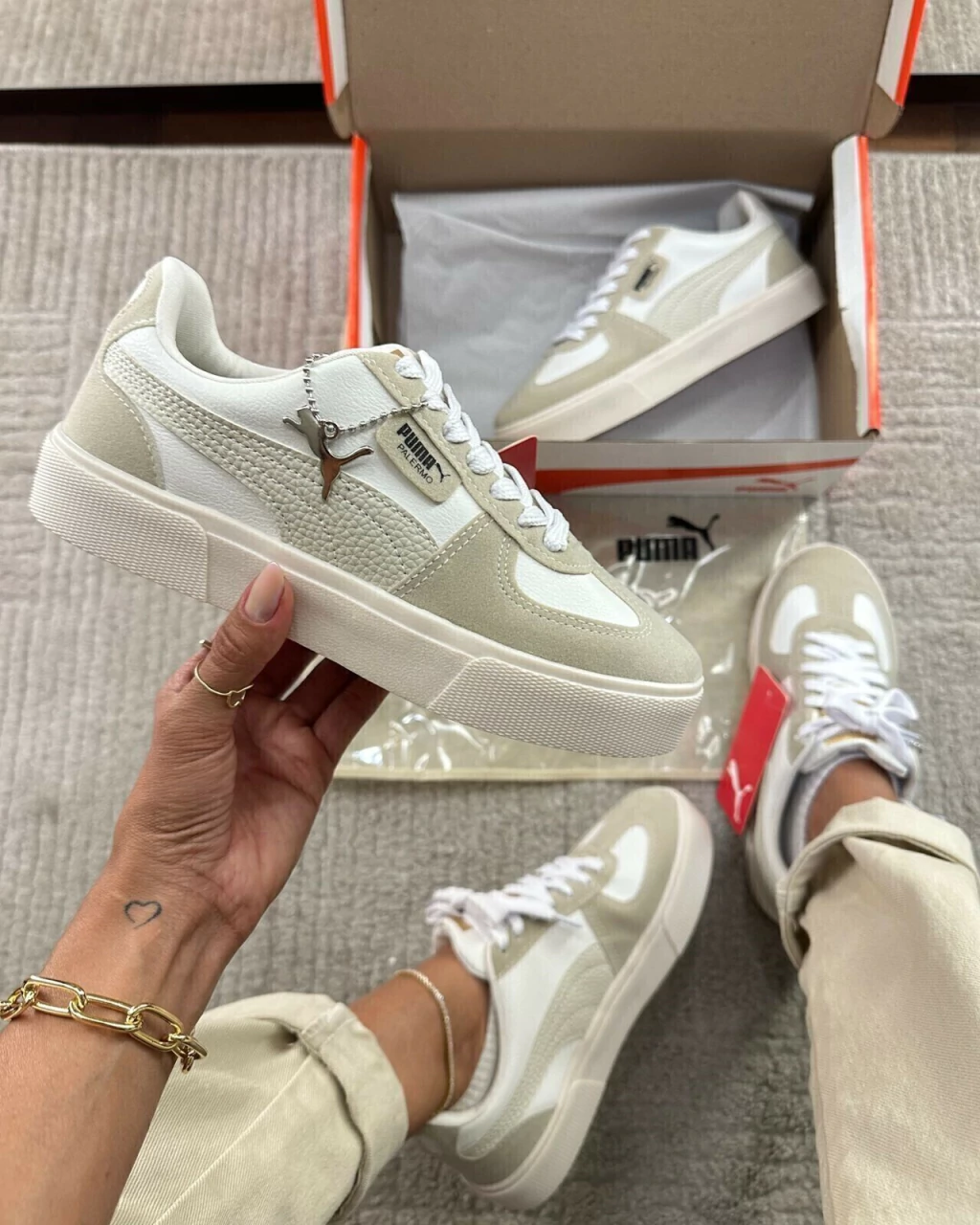 Este slide destaca a chegada do mais recente modelo de tênis da Puma, o Sued Soft Foam+, trazido diretamente do cenário internacional para a sua experiência de moda. Com um design inovador e tecnologia de ponta, este tênis promete elevar o conforto e o estilo a um patamar totalmente novo.